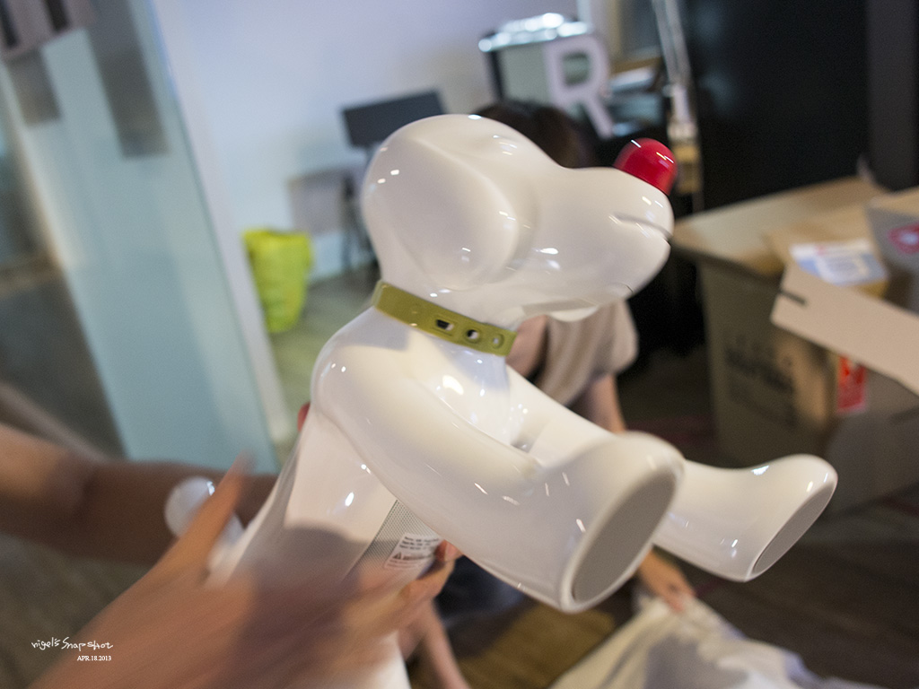 這款收音機小狗,是奈良美智大叔繼夢遊娃娃系列之後的雕塑類商品,是全球三千隻的限量好貨,本體是由FRP玻璃纖維製成,由於製作難度很高,據說連承包的工廠到現在也在緩慢製作,還沒把三千隻消化完畢,令人開心的是這樣的夢幻好物居然還能有機會入手,但台幣四五萬的價格,明知它會漲,我還是去三峽咬牛角沖瀑布鍛鍊抵抗力好了......... (雙手合十苦行中)