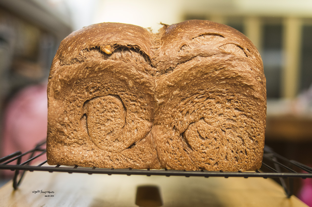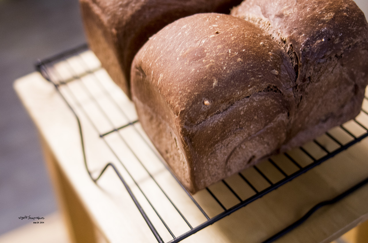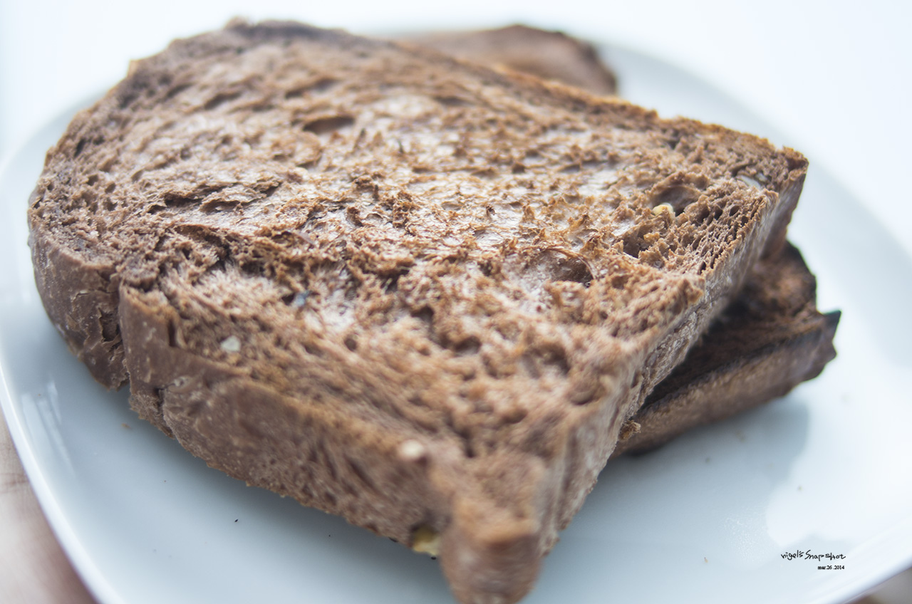↑ 正常的土司吃久了也是有點膩,於是上週新嘗試的是巧克力核桃土司