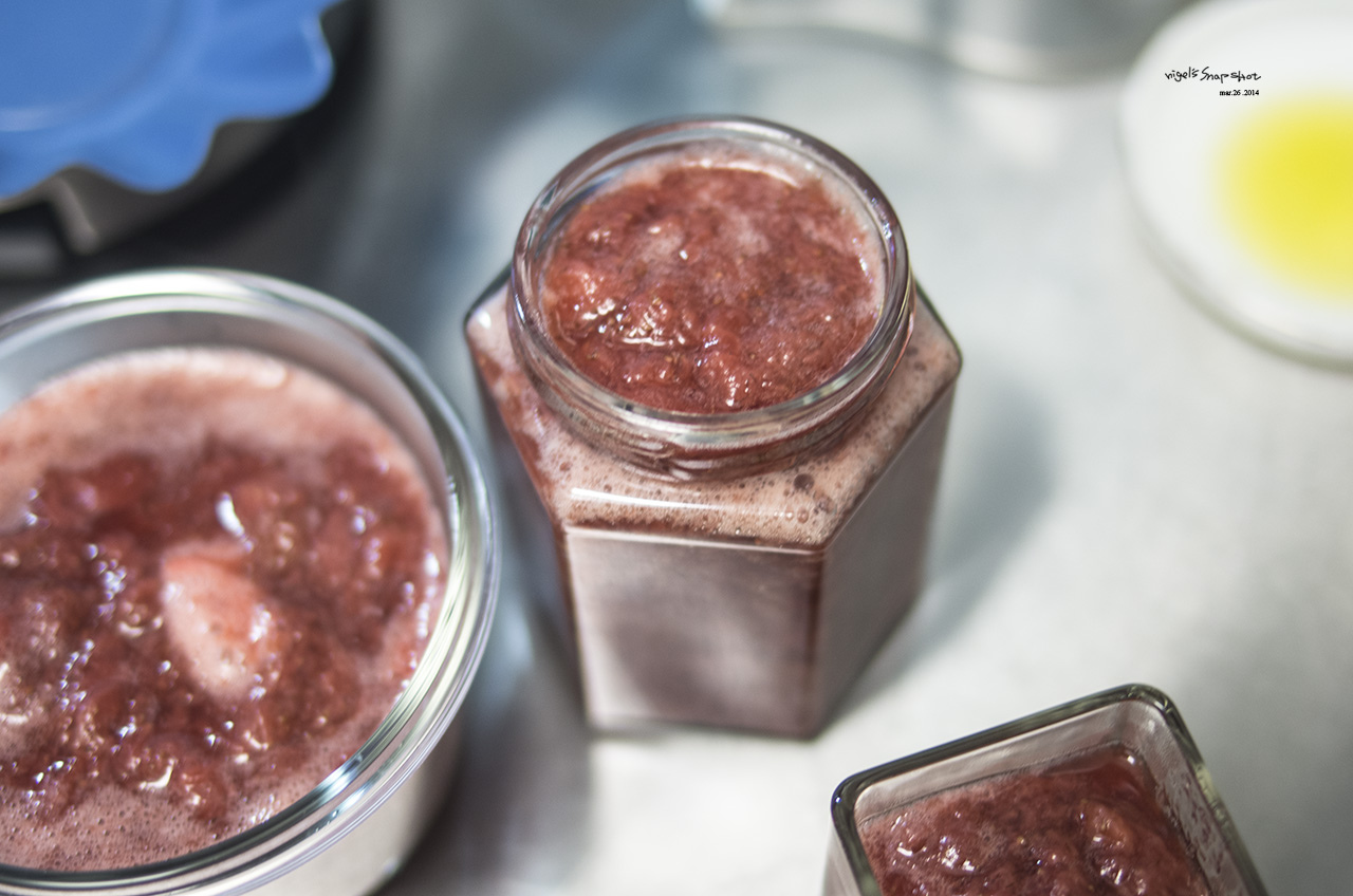 ↑ 新鮮的草莓果醬裝罐中,根據咱家的用量,一罐大概只能存活一個禮拜