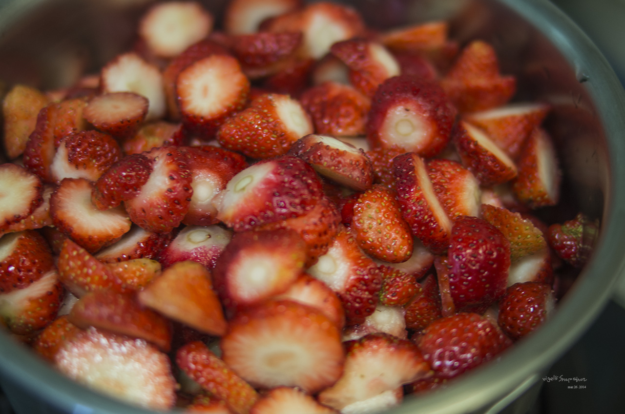 ↑ 路邊小發財買的有機草莓,切片之前,長得其實就是營養不良的樣子,但品質還算不錯,後續有遇到又買了兩次...(搶草莓是個很微妙的歷程,感覺自己很像要冬眠的熊拼命蒐集)