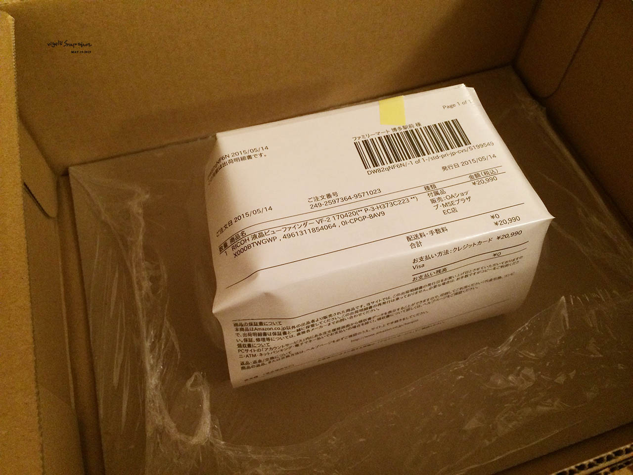 ↑ VF-2觀景窗也是用一樣的方式包裝,這盒就大概六分之五都是空氣,空曠到用力對箱底喊還會有回音呢(~回~音~呢~呢~呢~呢~呢)