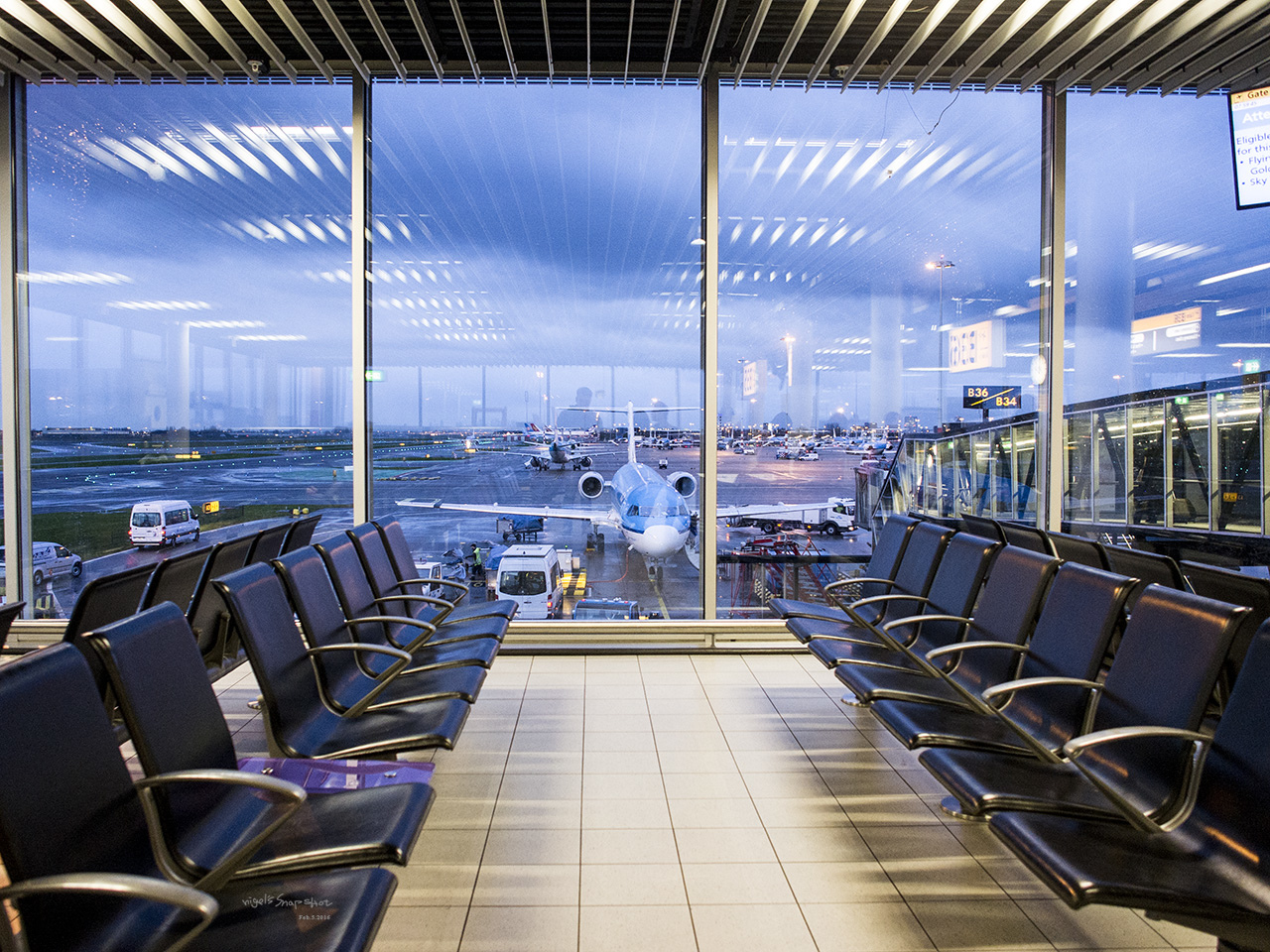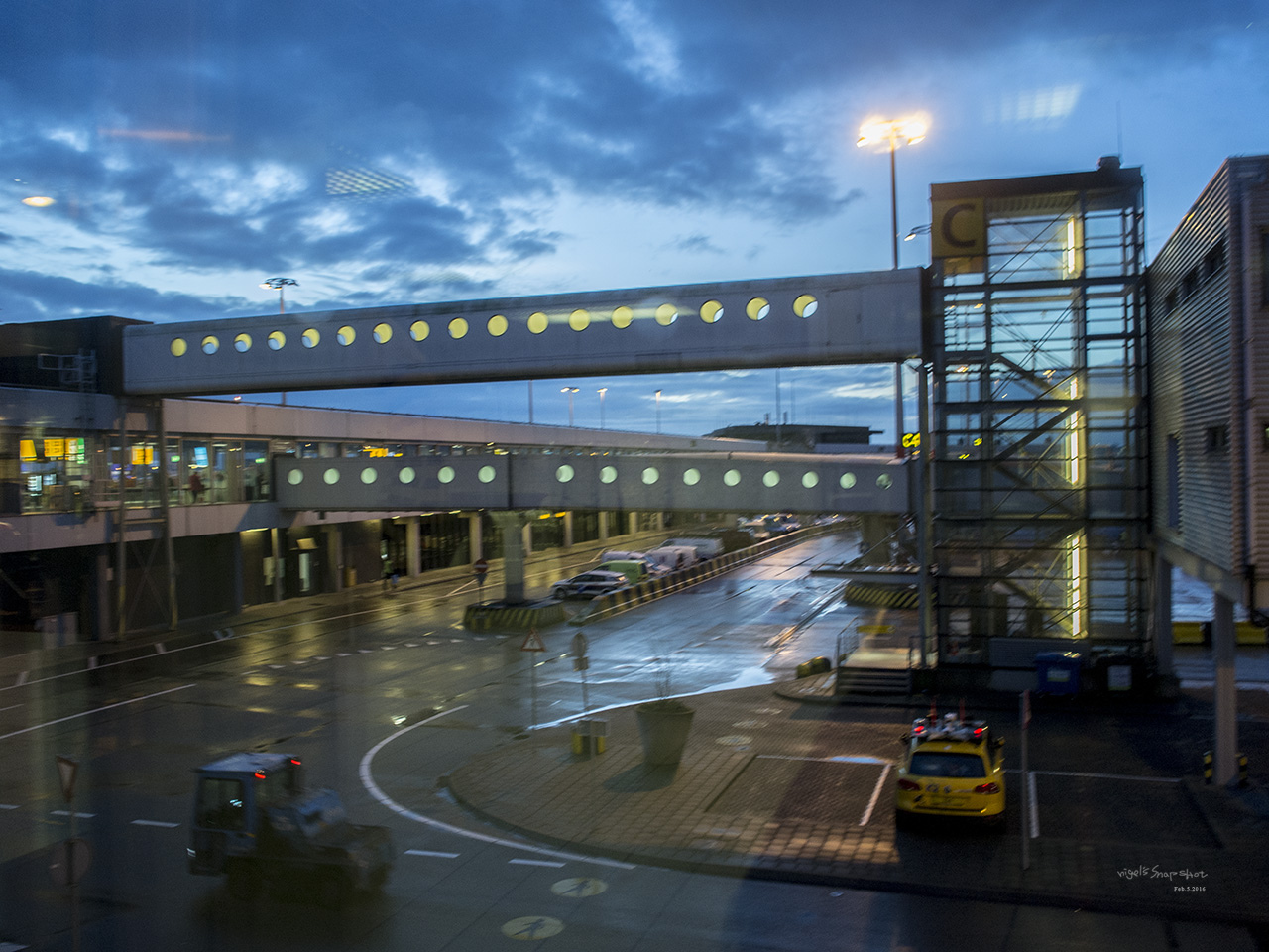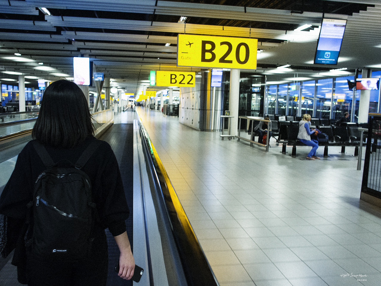 ↑ 阿姆斯特丹機場微微亮,查了一下外頭氣溫,嗯嗯兩度,不太冷啊(抖)