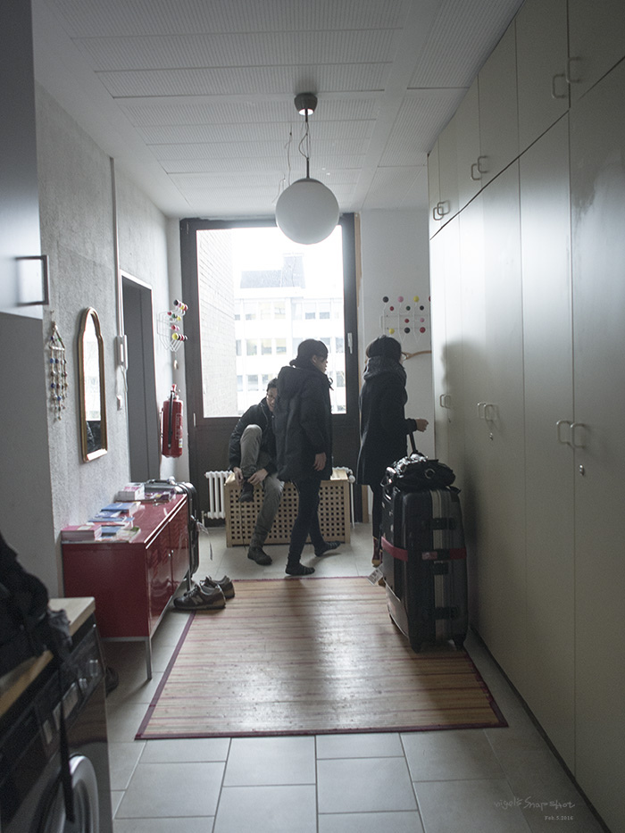 上飛機之前的行程也相當刺激,大年初二中午前結束所有拜年行程之後火速北上返家打包行李,然後距離起飛前三小時開車到機場要停車時,發現適逢年節,機場周遭所有停車場都是滿的(大驚),最後終於找到願意擠出停車位的停車場,大箱小箱準備要提著行李托運時,又在手扶梯上把整箱最重要的展出樣品摔到地上,簡直是一整天的凱格爾運動大連發,人還沒到歐洲,括約肌已經強化到可以夾斷鋼筋了(~菸)