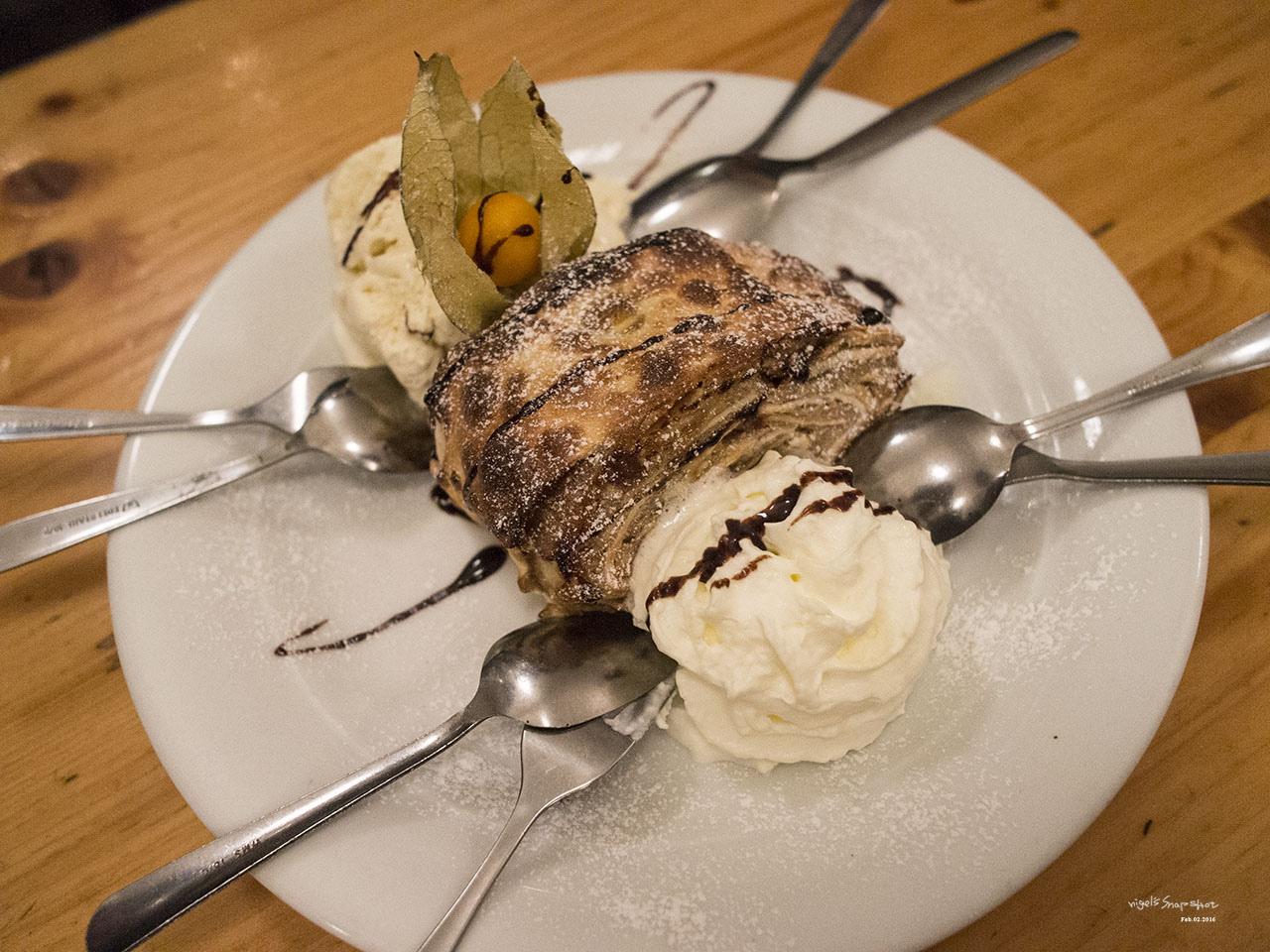 ↑ 餐後的甜點強到一個不行,冰淇淋+蘋果肉桂卷+鮮奶油