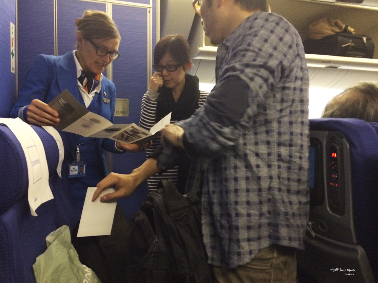 ↑ 結果降落時因為是最後一排等很久,這兩個已經跟空姐聊起來了(但連型錄都掏出來聊真的很強悍柳)